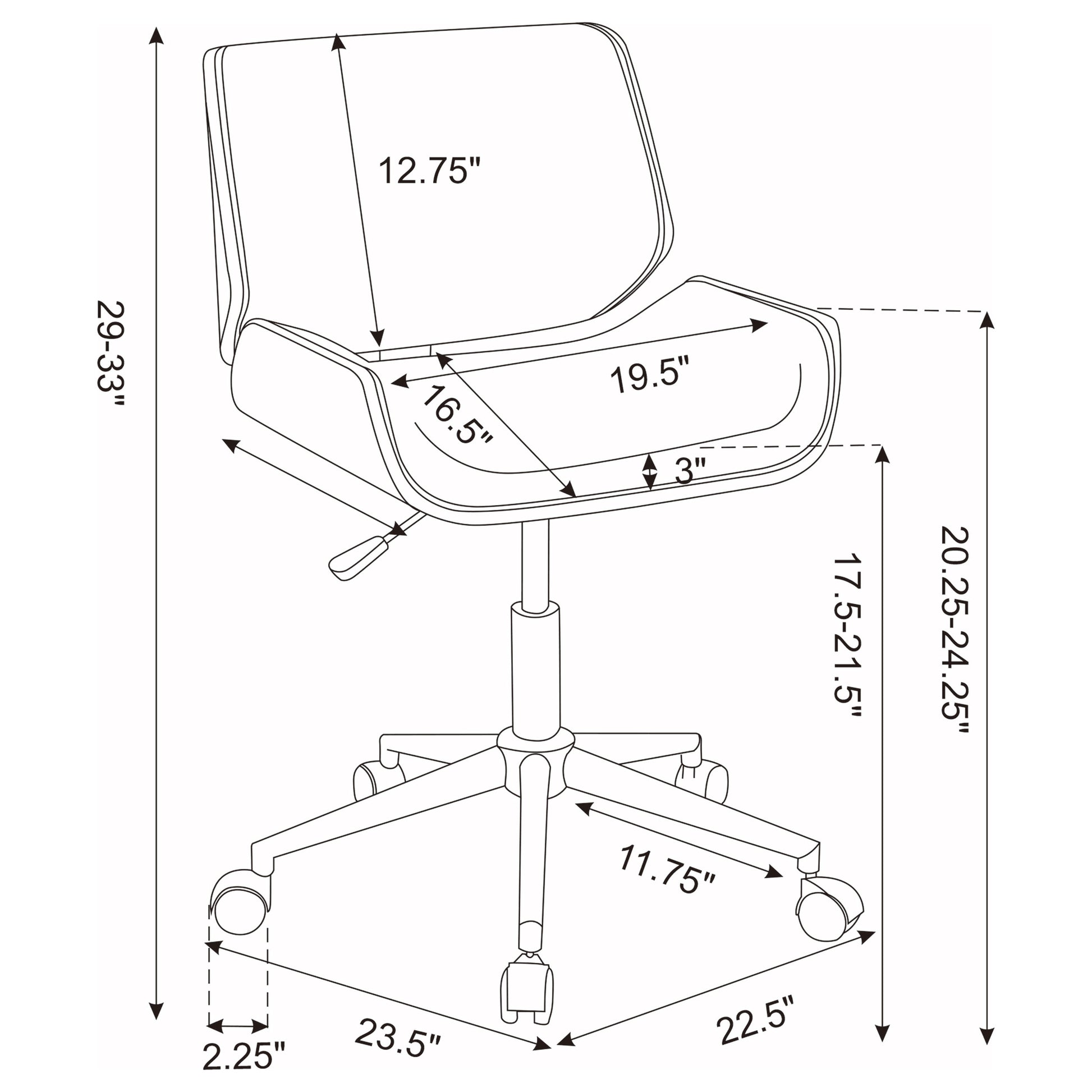 Stay true to a classic retro look. Delivering exceptional comfort, this office chair is a perfect blend of mid-century and modern styling. Tasteful elegance follows a clean, low-profile silhouette with a curved, padded seat and a gently curved seat back. Enjoy a lush palette with ecru leatherette upholstery and walnut and chrome trim. Adjustable seat positions and caster wheels add to its utility with custom seating and portability.