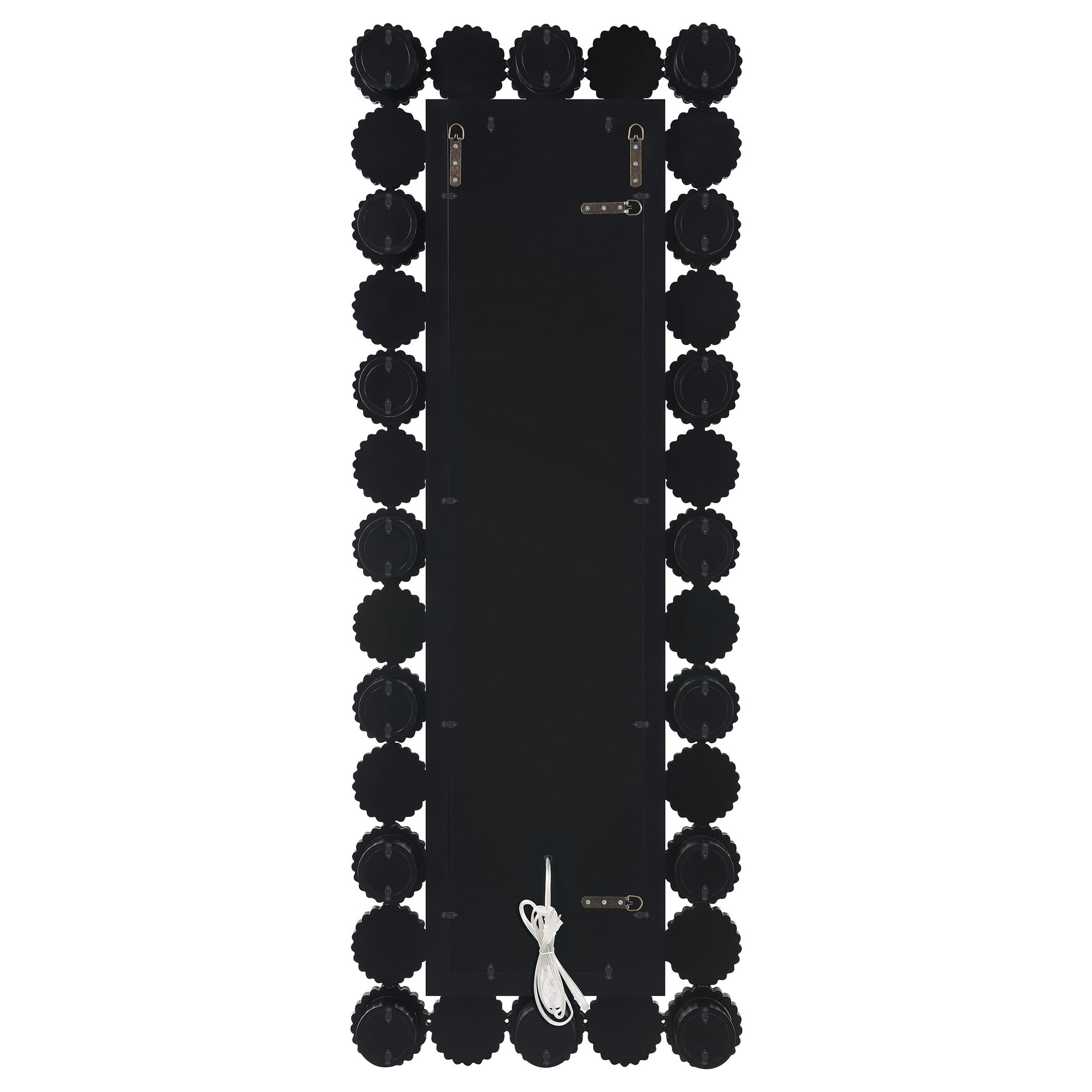 The contemporary full-length mirror lends a wonderful accent piece to your rooms. Featuring 16 LED lights that offer an even glow adding a glamour style to this piece. The Hollywood inspired frame is bordered by individual round mirror tiles, each further framed in sparkling mirror trim. Bold lines and sophisticated mirror plates merge to offer a modern touch. Situate this striking accent mirror within an entryway foyer to greet family and guests, or simply find your beautiful look through this mirror.