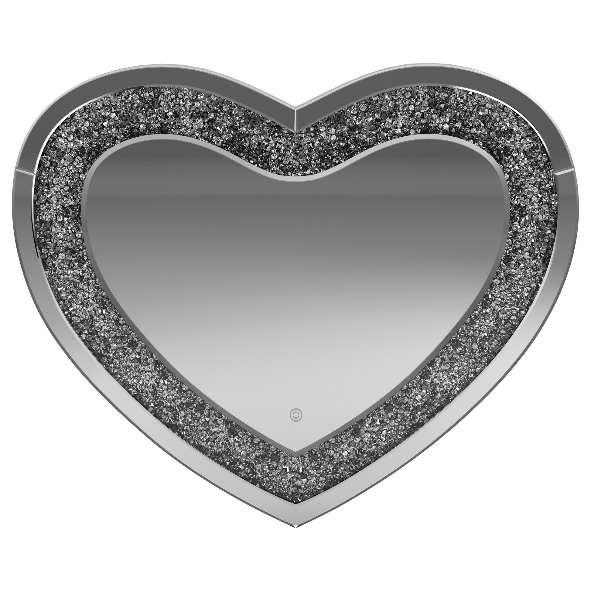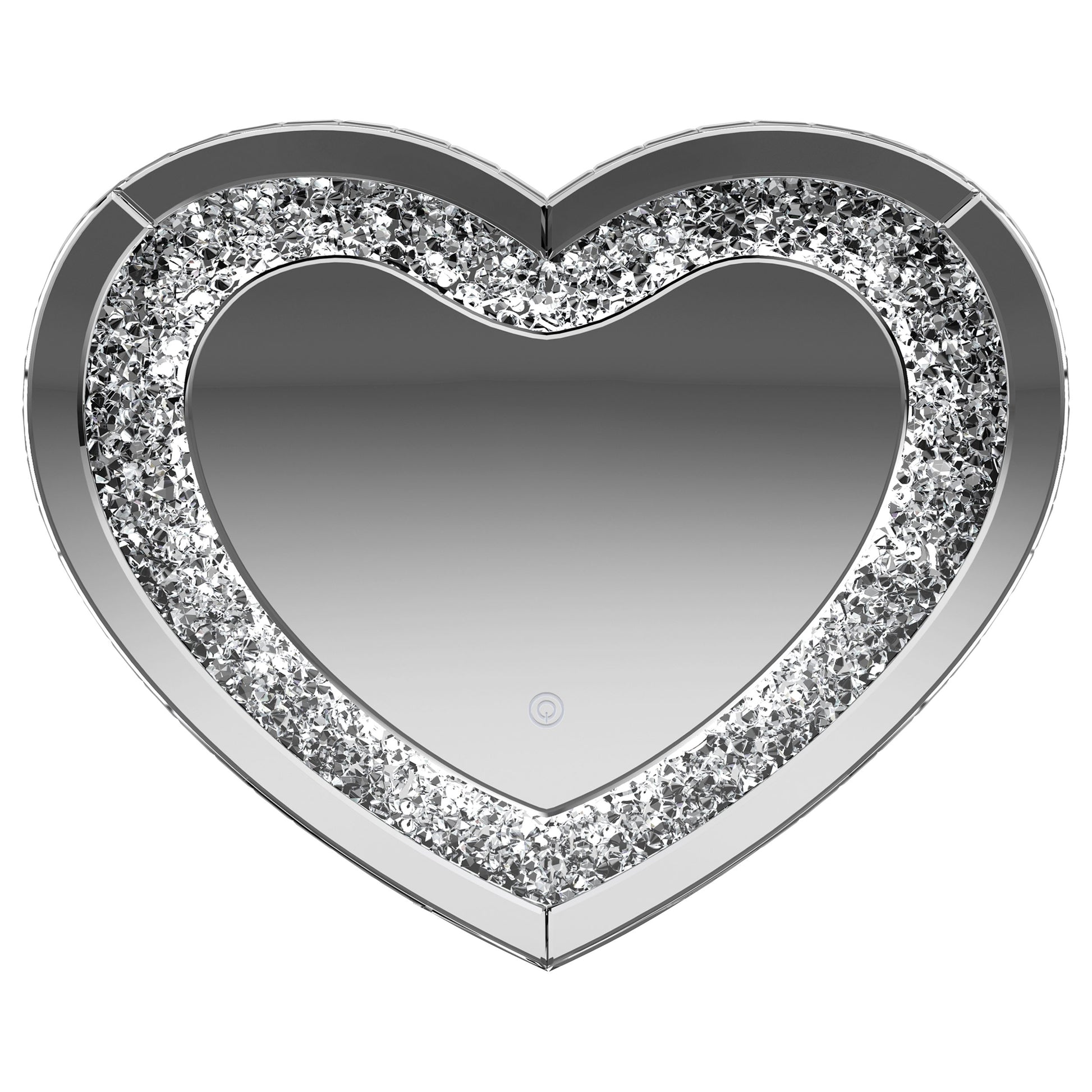 This heart-shaped wall mirror adds sparkle and function to glam-inspired spaces. Framed with mirrored glass and outlined by faceted acrylic crystal inlay, it delivers high-shine appeal. Integrated LED lighting enhances visibility for makeup, grooming, or daily routines. Designed for wall mounting, this decorative mirror combines charm and practicality—ideal for bedrooms, vanities, or dressing areas needing both style and illumination.