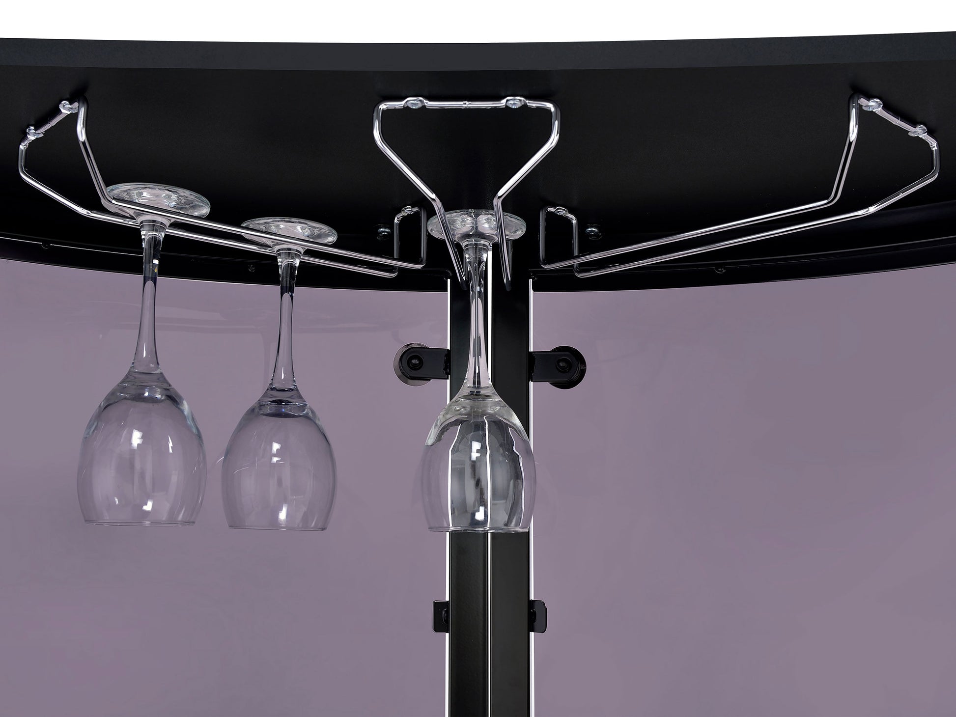 • Fixed chrome stemware rack holds glassware within easy reach