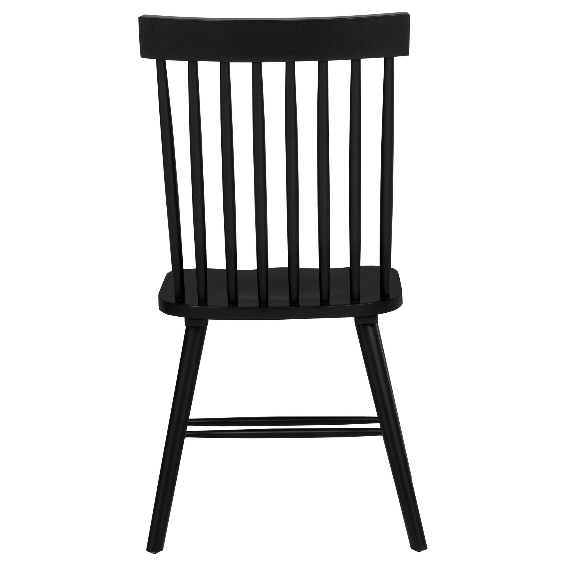 • Windsor-style side chairs feature tall spindle backs and gently contoured wooden seats