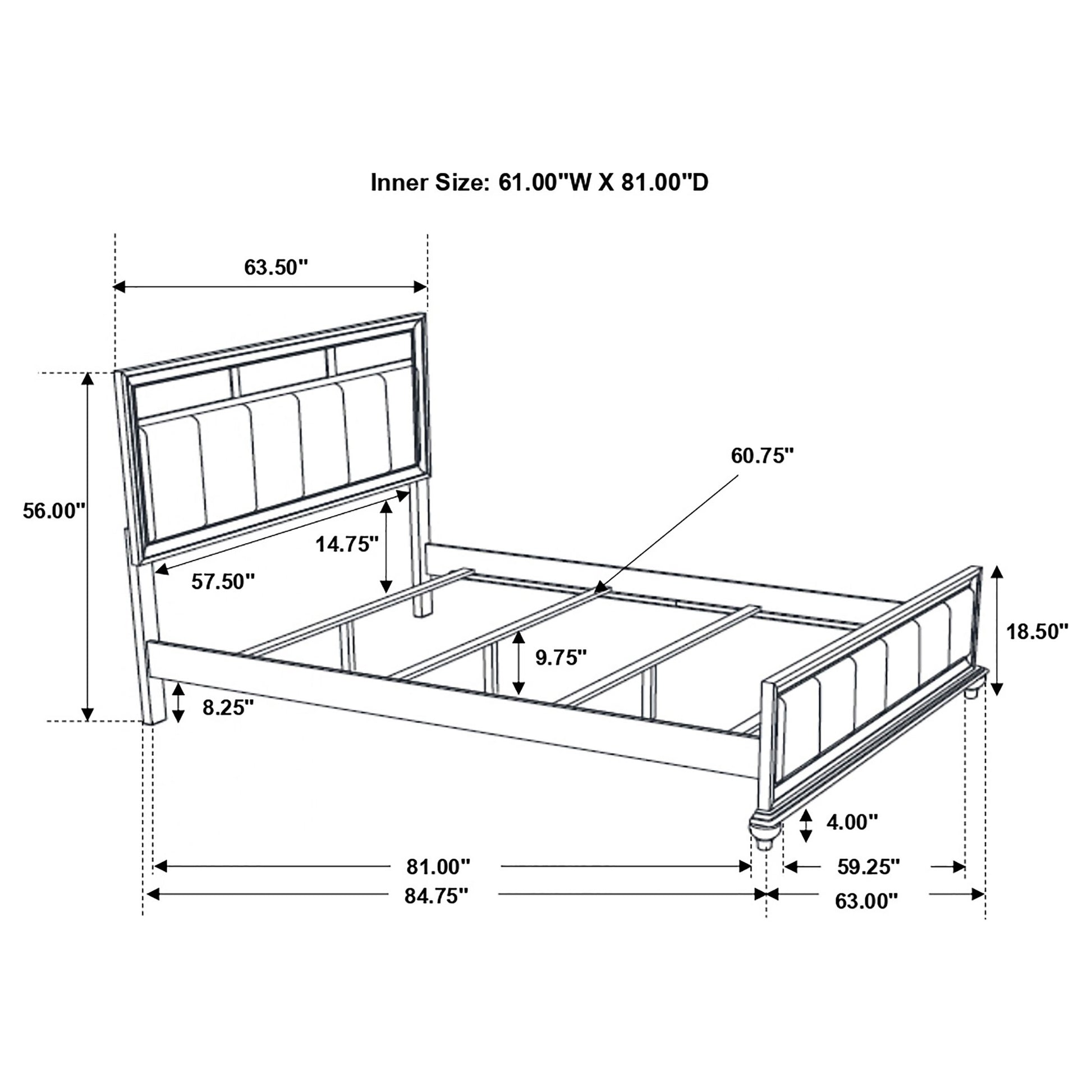 Transform your bedroom with the elegant design of this white set. The panel bed showcases metallic leatherette channel tufting framed by crisp molding and finished with turned feet for timeless charm. Coordinated storage brings added sparkle with glittery acrylic panels and faceted crystal hardware, blending modern radiance with classic details. Sculpted bun feet complete the look, while solid rubberwood, engineered wood, and okume veneer provide durability for lasting beauty and function.