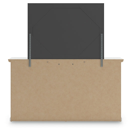 | Details | Includes dresser and mirror, Made of engineered wood (MDF/particleboard), Knobs with pewter-tone finish, Scalloped moulding, 6 smooth-operating drawers, Includes tipover restraint device, Mirror attaches to back of dresser; can also be mounted on wall horizontally or vertically, Safety is a top priority, clothing storage units are designed to meet the most current standard for stability, ASTM F 2057 (ASTM International), Drawers extend out to accommodate maximum access to drawer interior while maintaining safety | |