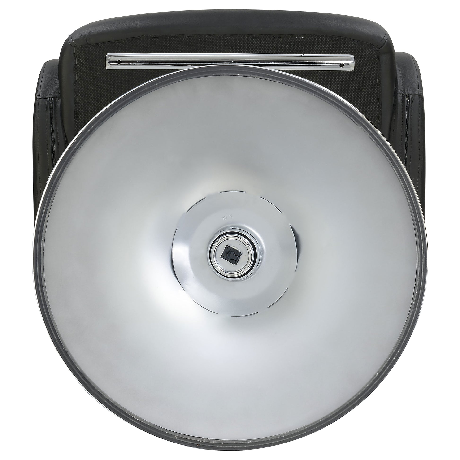 Expressive and interesting design elements team up to deliver a fun look. Make a modern or transitional space flush with style. This bar stool borrows from a retro theme with a hint of barbershop charm. An ergonomically positive seat, back, and arms encased in black upholstery match with virtually any palette. A bright, shiny chrome base with a bar footrest looks sleek and dynamic, and adjustable seat heights accommodate a bar table or counter.