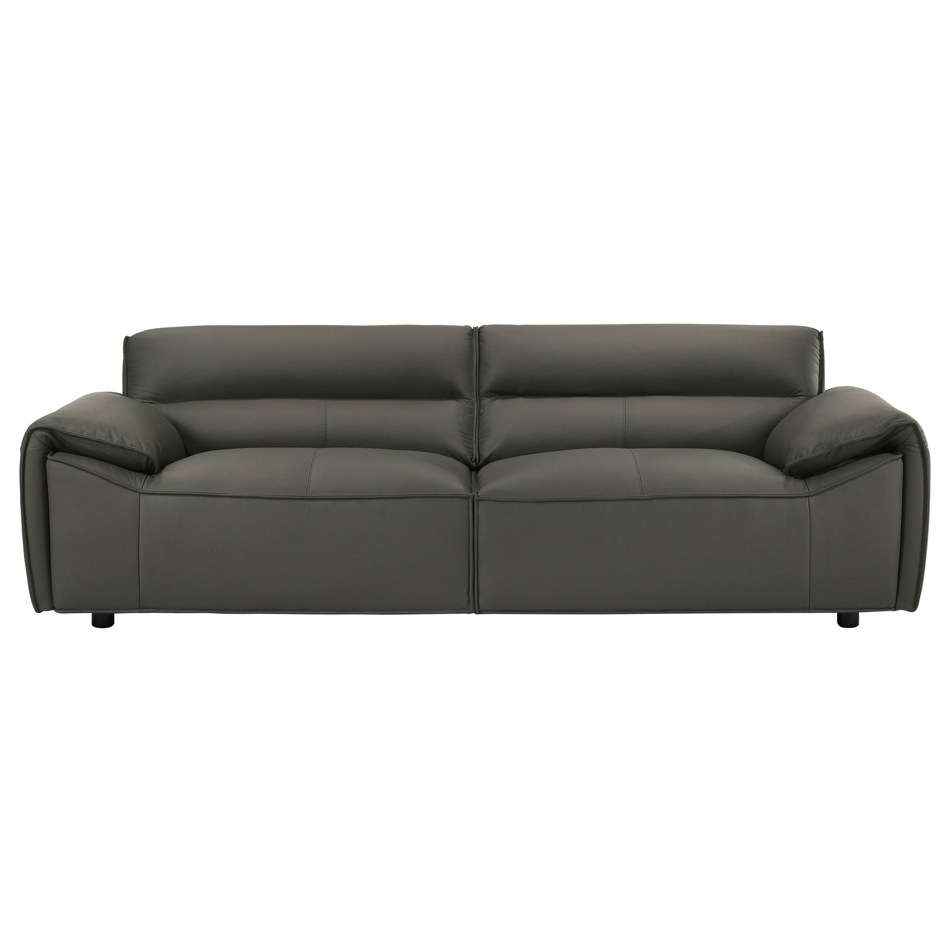 Refined and sculptural, this leather sofa set blends modern minimalism with deep, enveloping comfort. Upholstered in 100% genuine top grain leather, each piece features wide, gently sloped arms and a low-profile frame that grounds the room with effortless presence. Deep seat cushions are filled with high-density full foam and supported by sinuous springs, creating a balanced feel that’s both structured and soft. Tailored yet inviting, this two-piece set is crafted to elevate comfort with enduring sophistication.