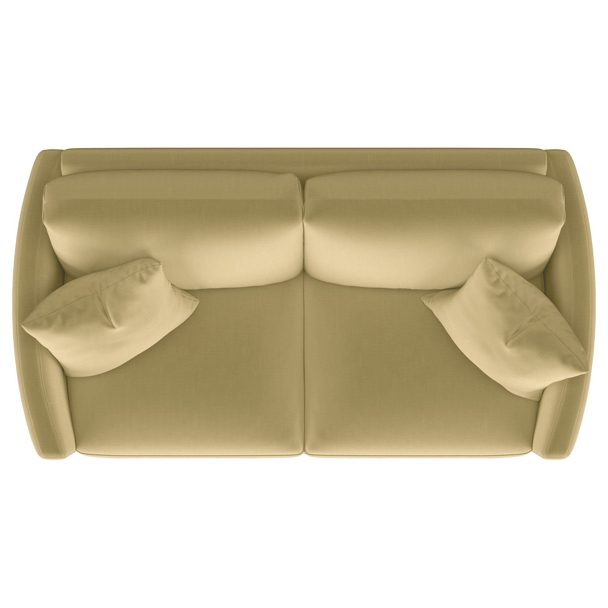 Indulge in opulent comfort with this textured velvet loveseat. Its reversible feather blend seat and back cushions, complemented by curved arms and gold stainless steel legs. Smooth upholstery and lustrous details blend simplicity with timeless splendor, making this piece a perfect focal point for refined interiors. With its inviting profile and graceful presence, it elevates both style and relaxation.