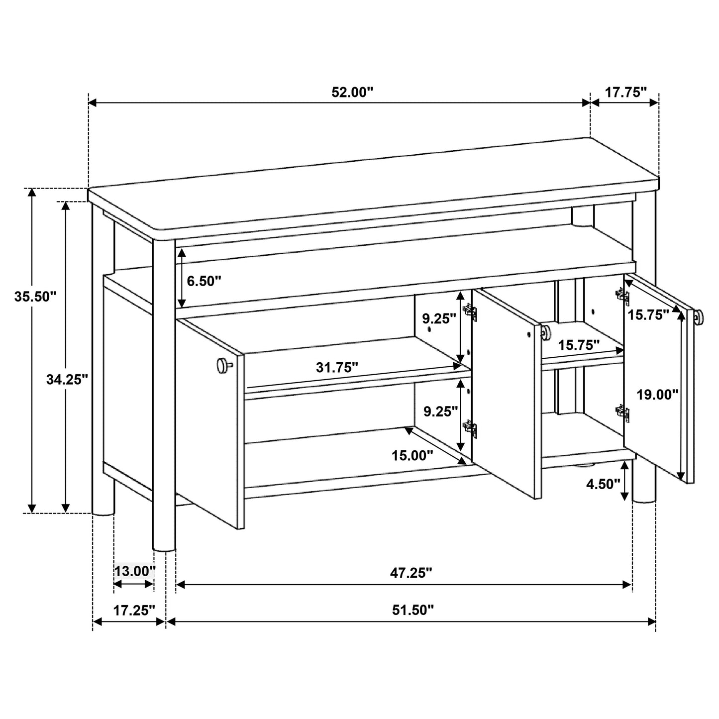 • Casual style makes this modern three-door sideboard the ideal choice for approachable ambiance