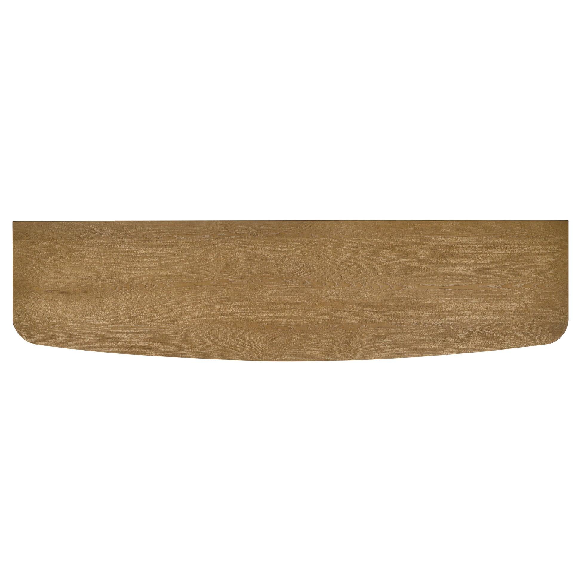 With graceful curves and rich texture, this mid-century inspired media console becomes an understated centerpiece. Reeded sliding doors ripple gently across the front, adding quiet rhythm to its softened silhouette. The weathered natural finish warms the room like sunlight through wood grain, while open shelving within offers thoughtful space for your favorite pieces. Crafted from solid rubberwood and engineered wood, and perched on tapered legs, it brings both elegance and ease to any curated living space.