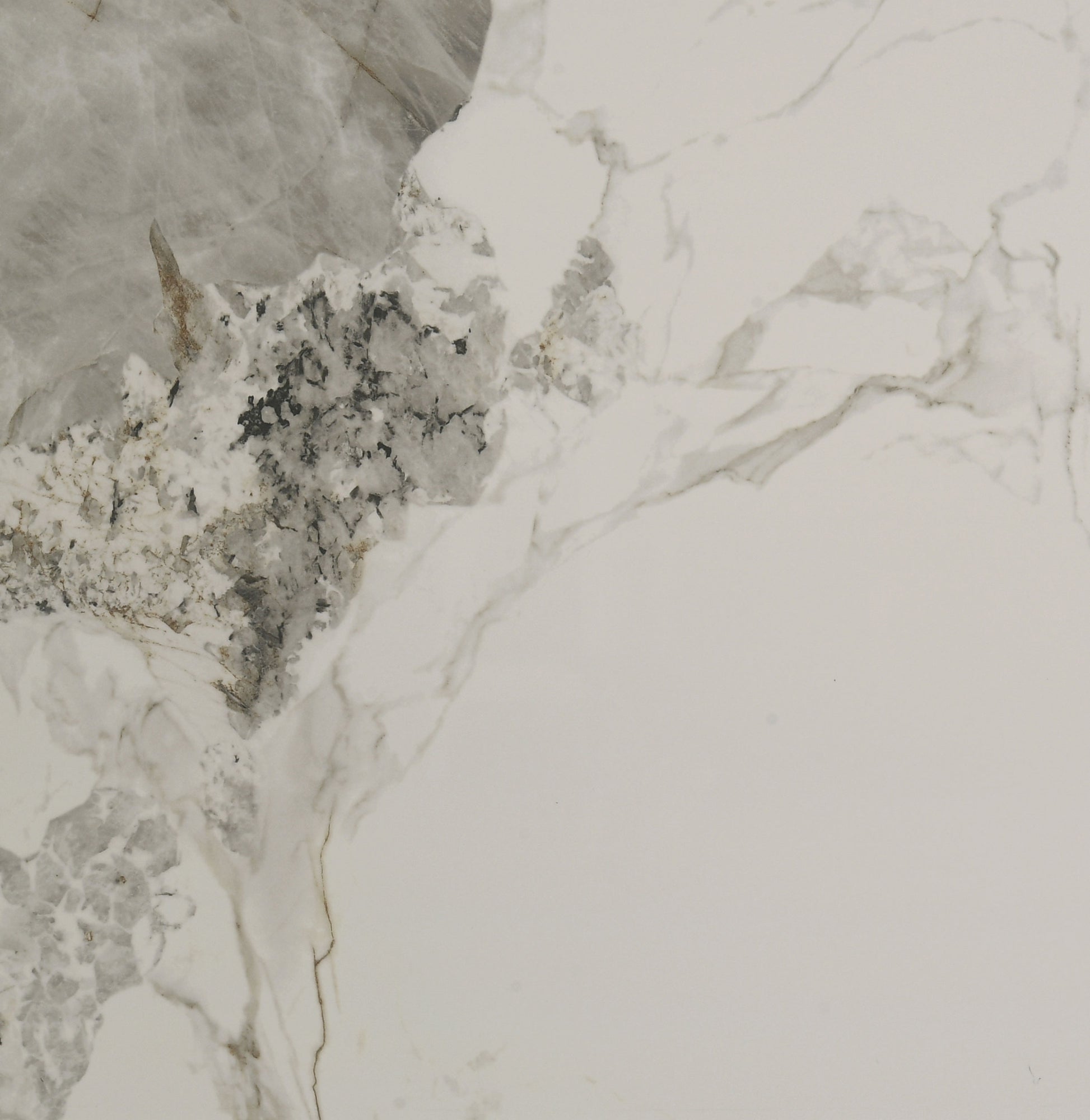 • Recessed ceramic surface features marbled tones of off white, grey, and amber brown