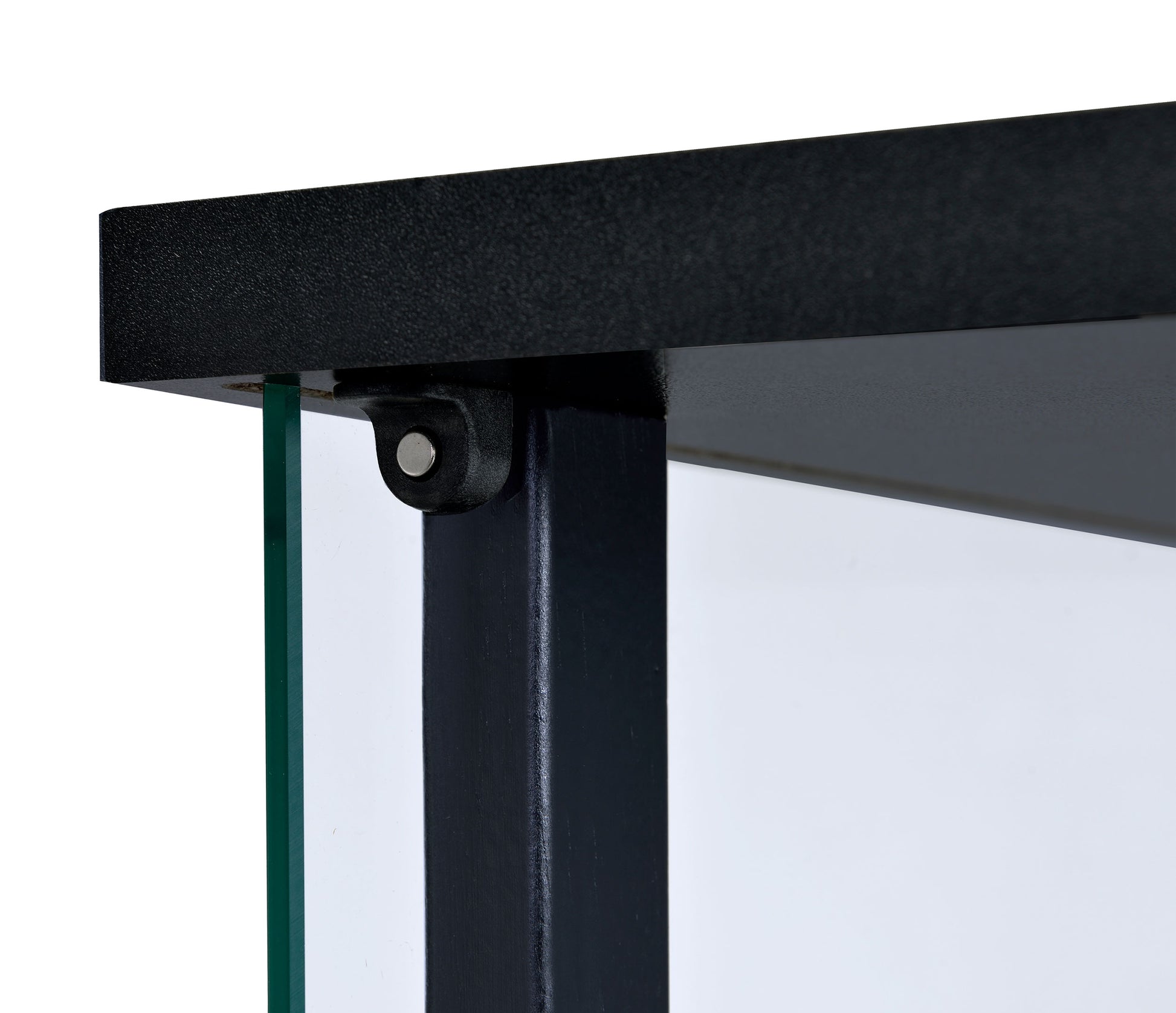 • One reversible magnetic push-to-open clear tempered glass door provides ease of access and strength