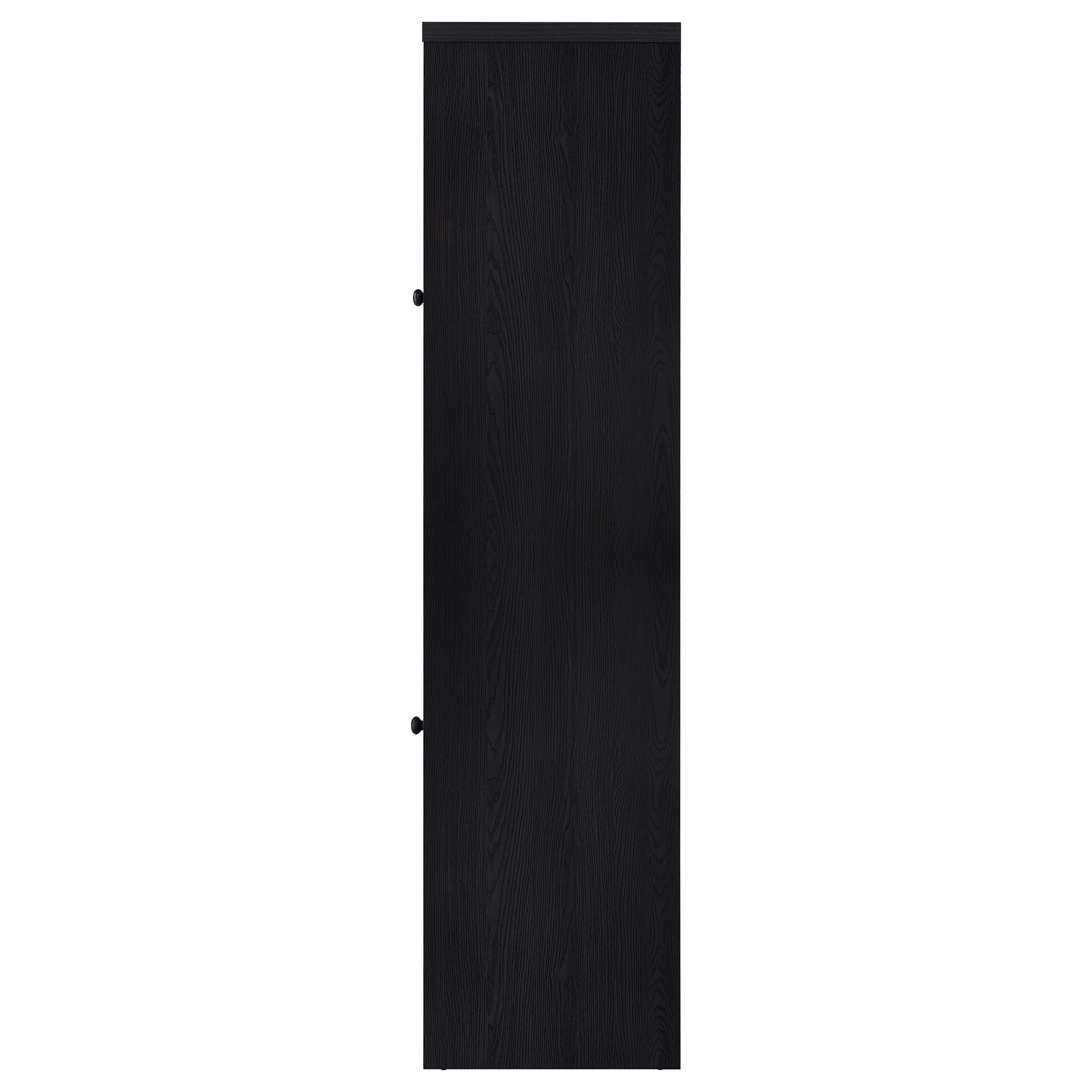 This three-piece entertainment center brings bold character and quiet refinement to the modern living room. Framed in matte black with framed glass doors and a natural wood-look interior, it offers a striking contrast that feels both grounded and elegant. Adjustable shelving provides room to display, while hidden drawers and cabinets keep everyday items tucked neatly away. With its tall, architectural profile and warm two-tone finish, this ensemble transforms your media setup into a curated focal point.