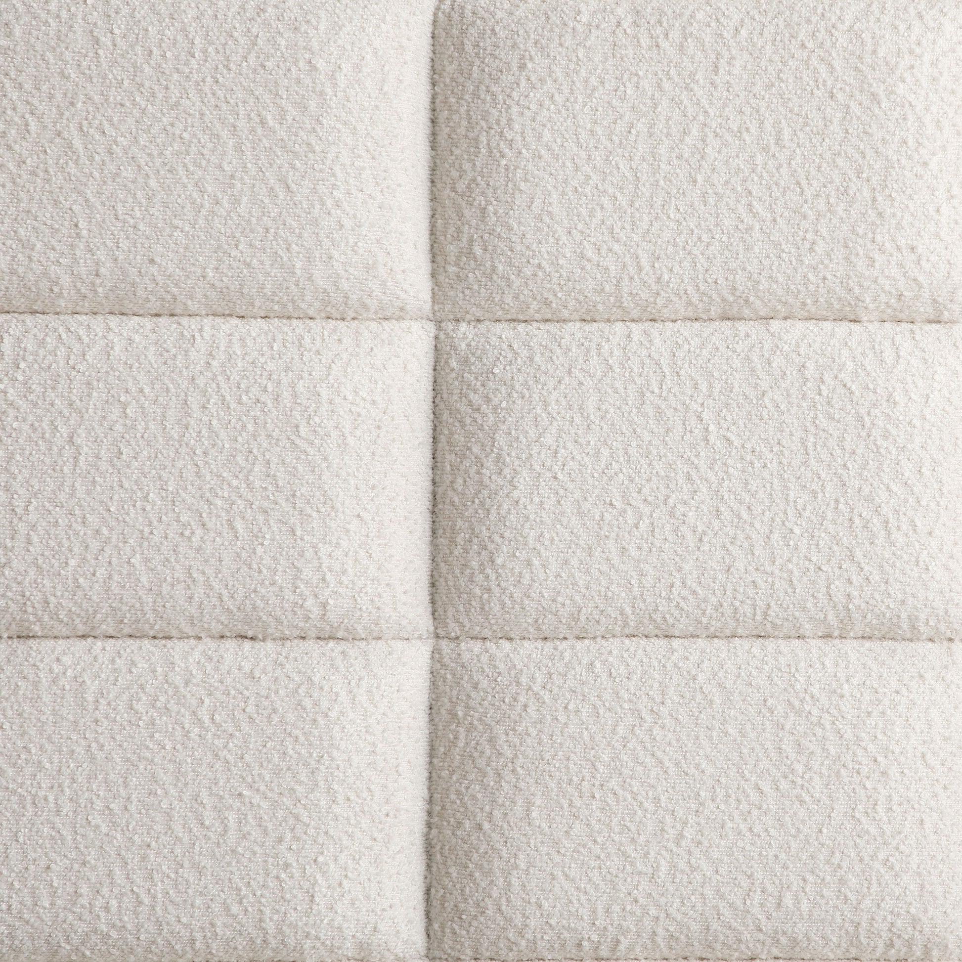 • Extra-tall headboard and low footboard with matching grid tufting adds airy structure