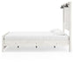 Cool, clean and casually modern. This queen panel bed’s white rustic finish sets the tone for your calming sanctuary. Matte black sconce lights and an abstract design on the headboard bring a fresh look to the bed’s simply stunning profile.