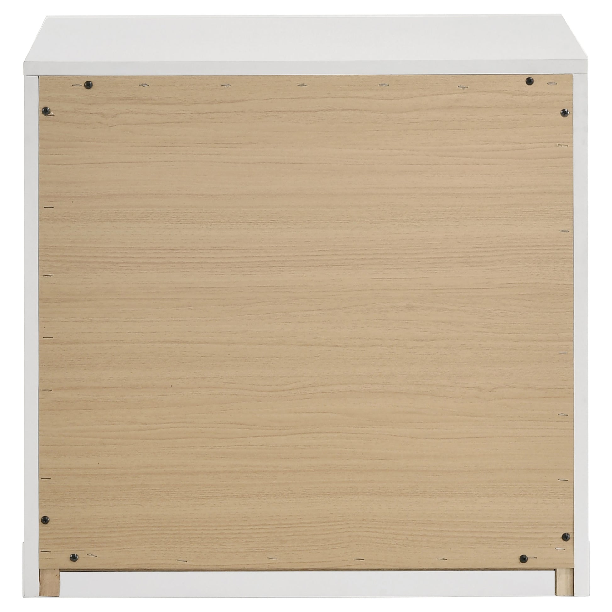 • Two-drawer nightstand with bold vertical symmetry and clean modern proportions