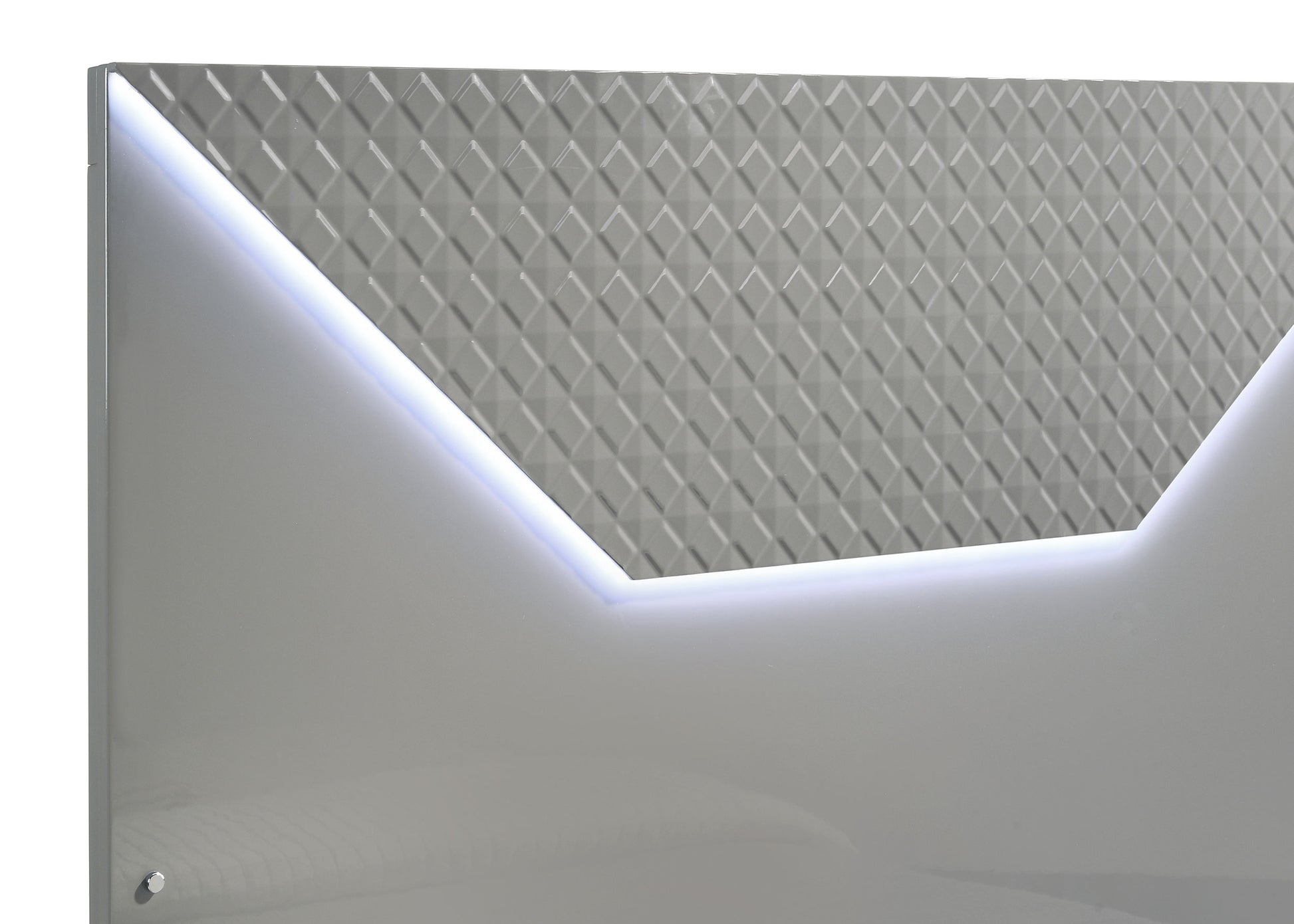 Ives Eastern King Panel Bed LED Headboard Grey High Gloss
