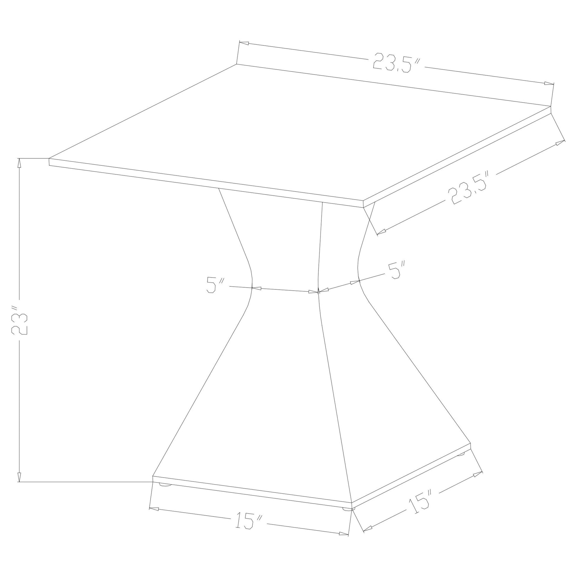 Introduce stylish allure with this modern end table, showcasing an hourglass-inspired base in a polished silver finish. Constructed with stainless steel and tempered glass, it features a square top with a beveled edge, adding dimension and refinement. The clear glass highlights the sculptural design of the base, reflecting light and creating visual intrigue. Perfect for modern interiors, this table combines bold artistry and functionality to elevate any living space.