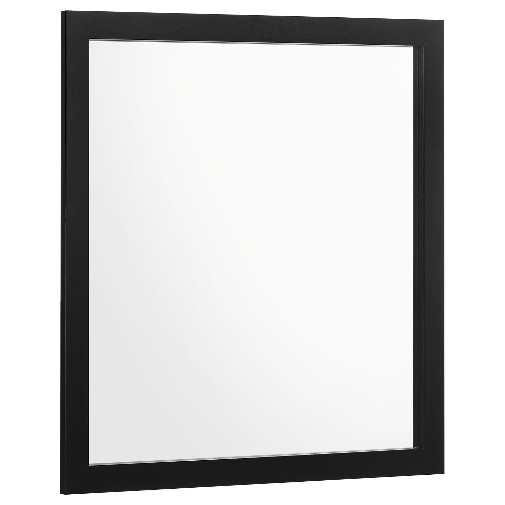 Top off your dresser with this simple and elegantly understated modern mirror. A sleek clean frame surrounds the edges of this rectangular mirror, offering a tall, vertical design against the walls. A smooth, black finish offers a striking contrast, but lends itself to existing bedroom color palettes too. Place this lovely black framed mirror on top of a dresser to create a useful vanity setup. It creates the perfect place to get ready and prepare for the day.