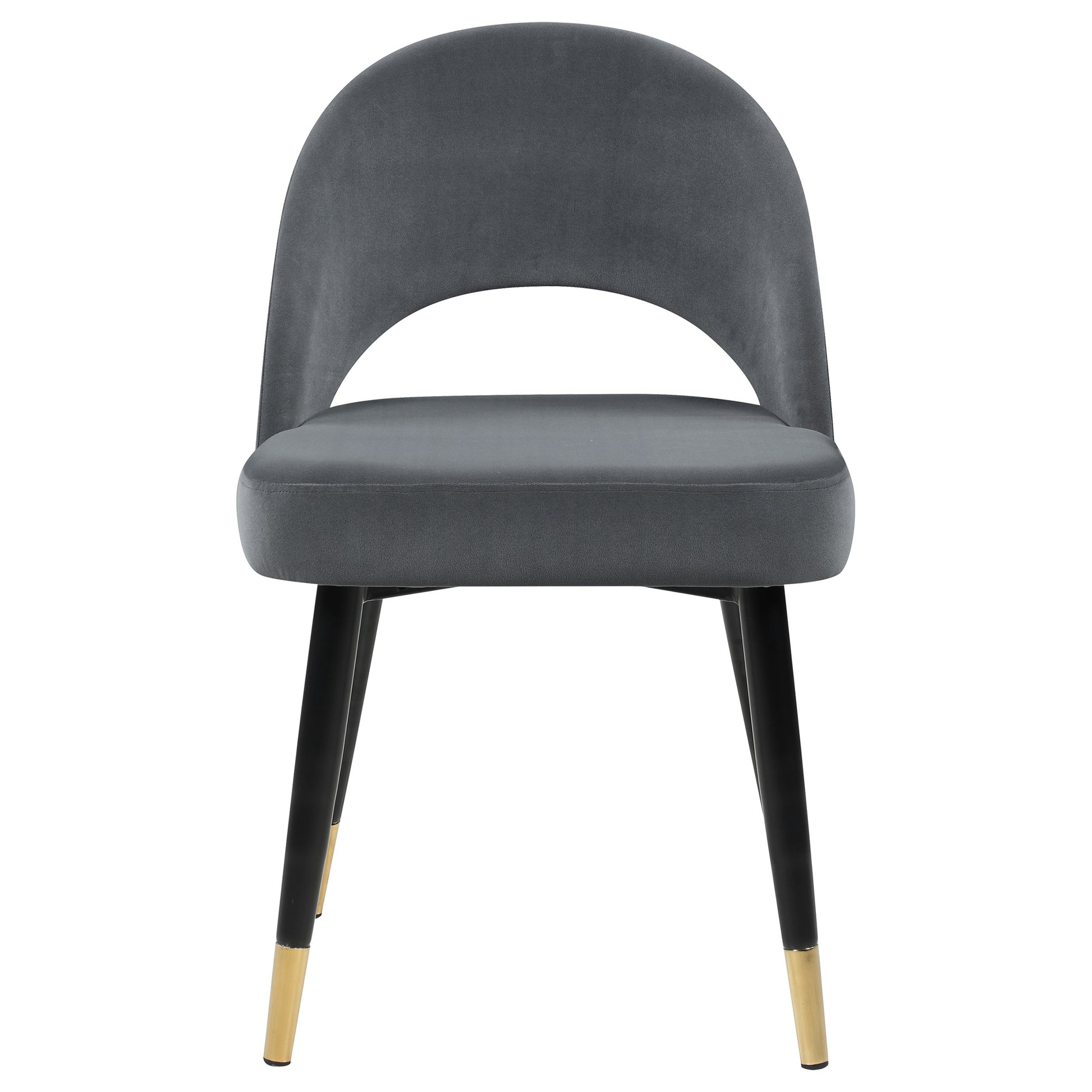 Add a touch of retro-inspired elegance to your dining room with this stylish dining side chair, featuring an elegant bucket-style seat that embodies Mid-Century modern charm. Wrapped in luxurious velvet, each chair provides a supportive, long-lasting seating experience, making it perfect for hosting dinner guests or enjoying a cozy meal. The flared, tapered legs, finished with dramatic gold-capped feet, add a regal Hollywood glam touch that enhances any dining space. This versatile chair effortlessly complements various color palettes and brings a bold statement to both formal and casual settings. Pull these chairs up to a spacious rectangular dining table to create an inviting and chic atmosphere for any gathering.