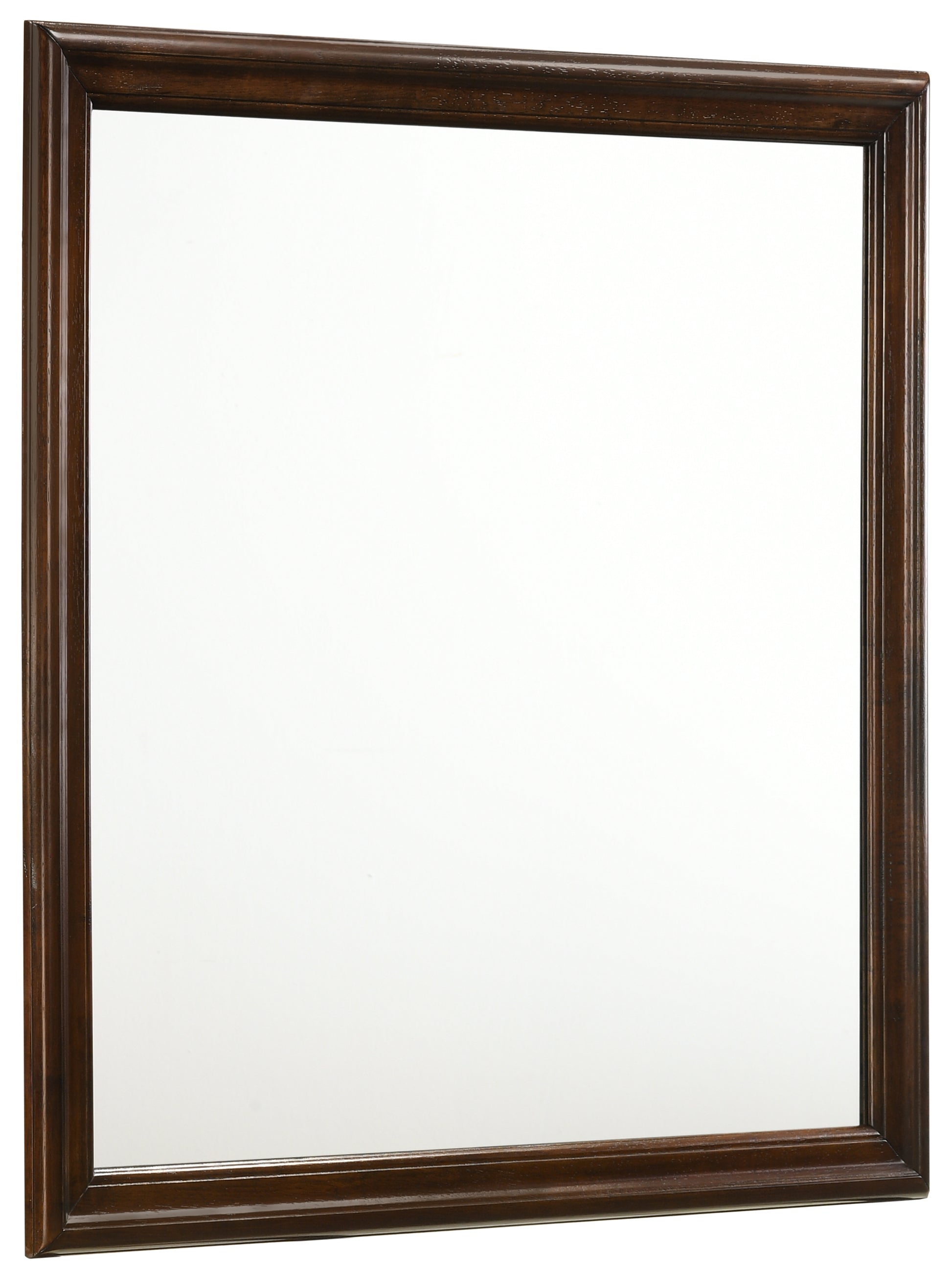 The Louis Philippe collection features this 5-piece bedroom set that is well-suited for a youth or guest bedroom. The Full bed (also available in Eastern King, Queen, and Twin) has a slightly flared headboard and footboard for added styling. The nightstand and chest have spacious drawers featuring dovetail construction and handy yet stylish silver bail handles. The dresser features drawers with similar construction and accents as well as enough space on top for the rectangular mirror with clean lines to complete the look. This traditional style set is crafted from select hardwoods and wood veneer and with a warm cappuccino finish for an elegant appeal.