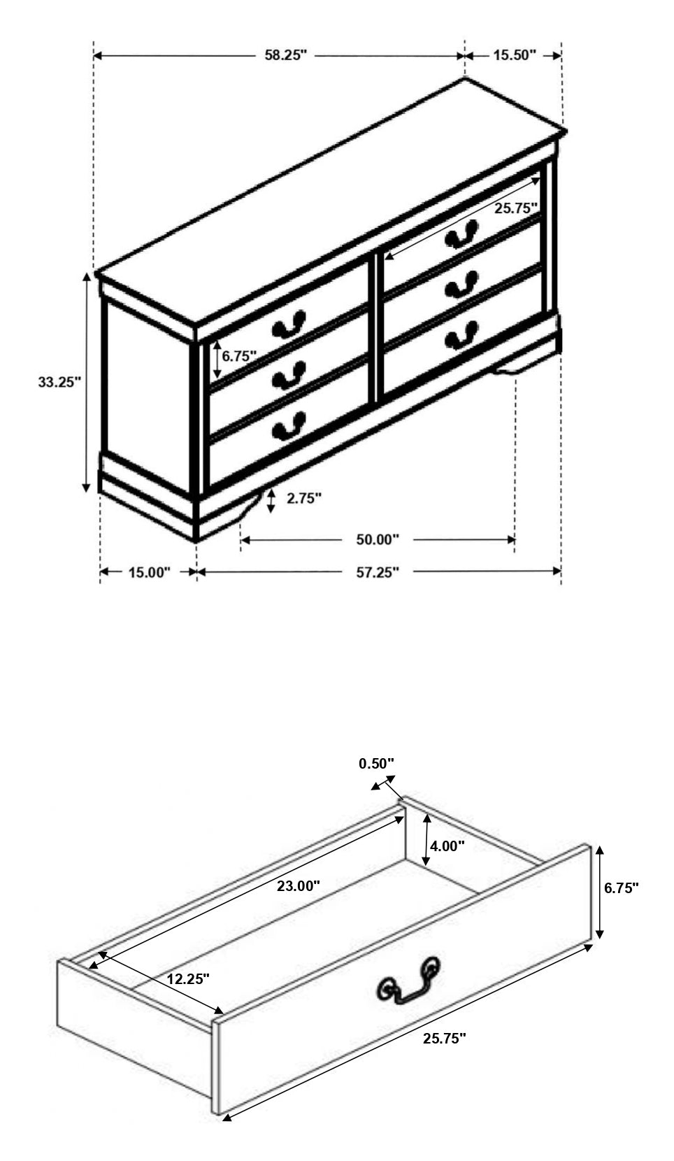 Louis Philippe 6-drawer Dresser with Mirror Cappuccino