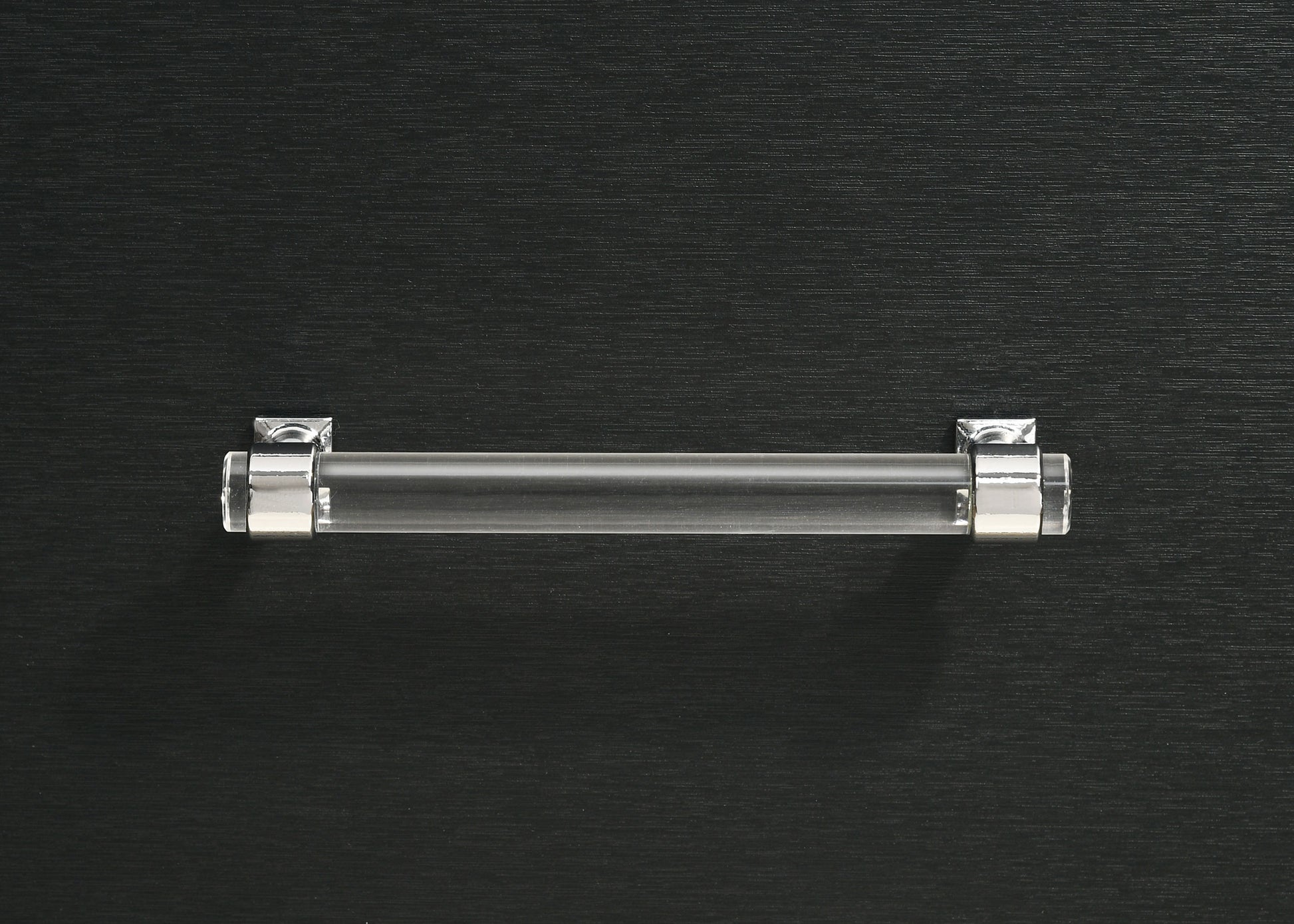 • Cool gleaming chrome finish trim highlights the front of the case, long bar pulls and decorative legs