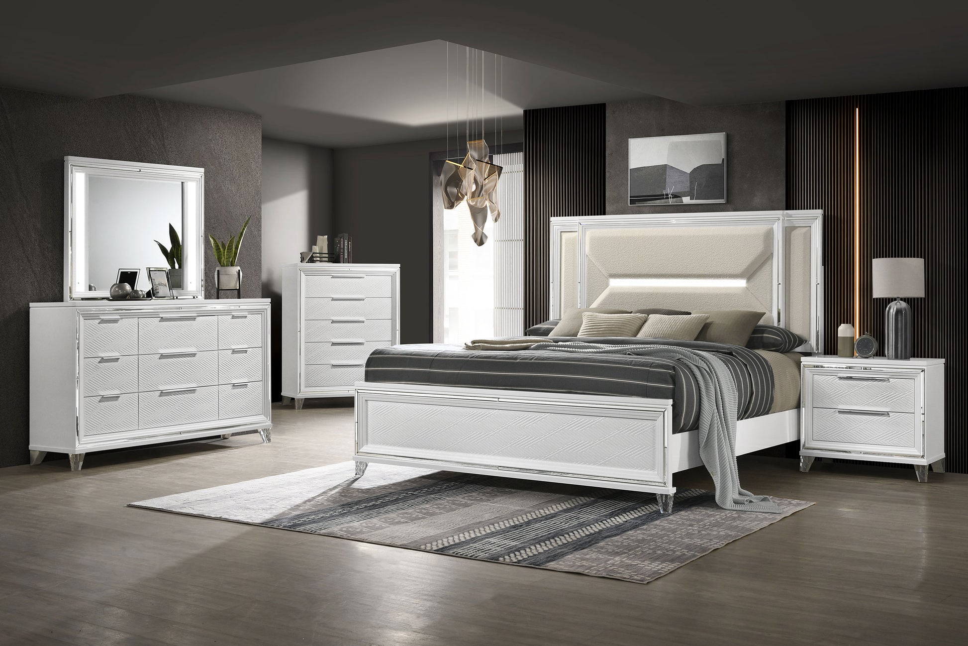 • Touch LED lights in the headboard provide added convenience and a modern touch to your bedroom