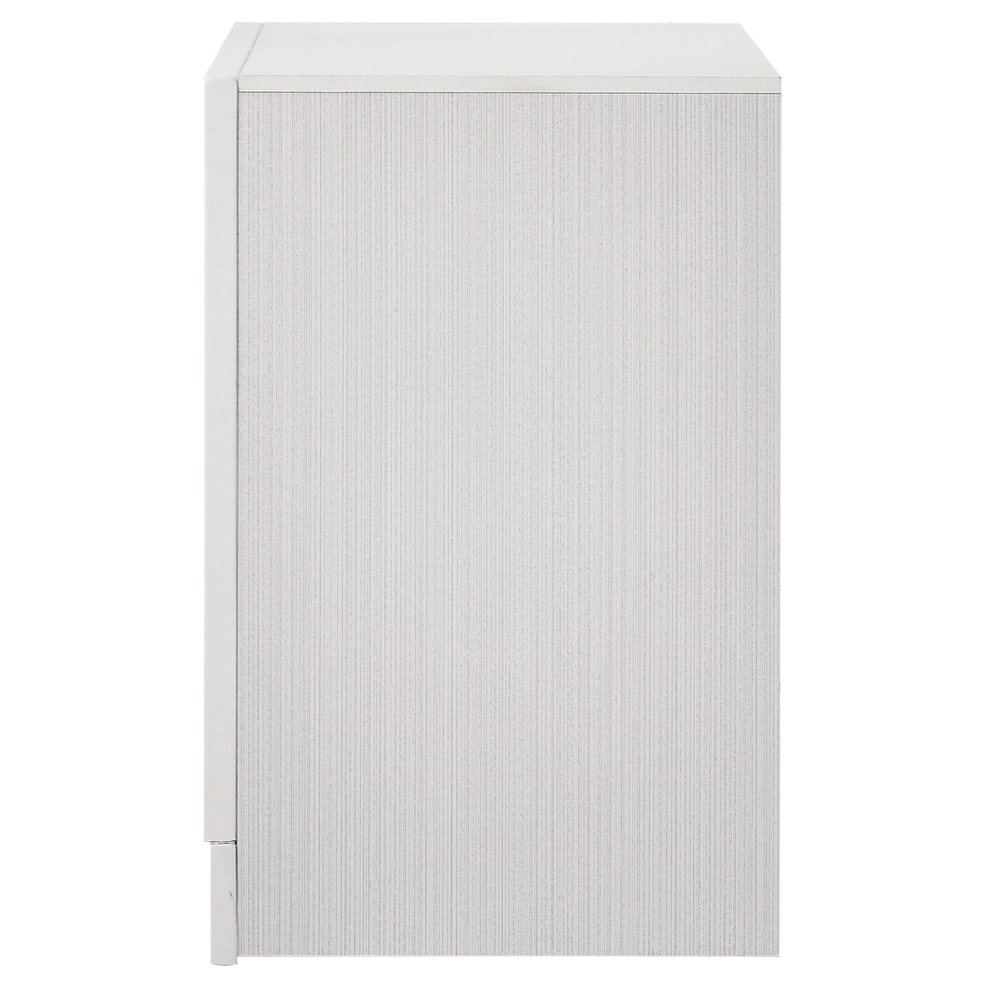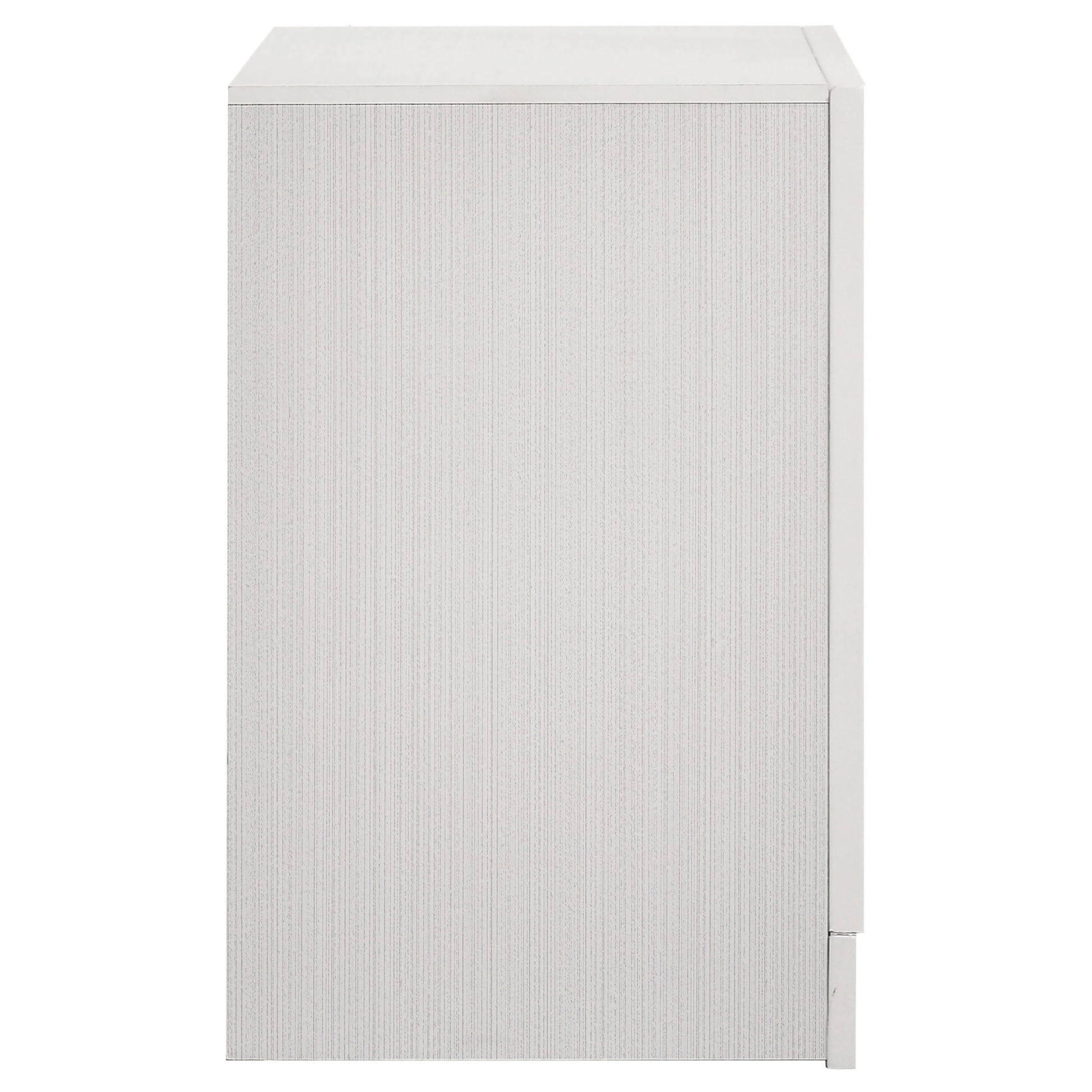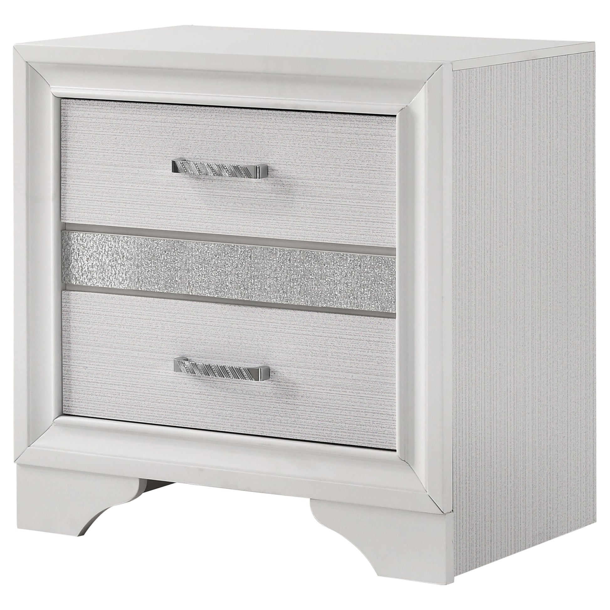 Infused with timeless glamour, this three-drawer nightstand brings refined character to any bedroom. Its linear profile is accented by elegant framing and a glittering center panel that conceals a hidden felt-lined drawer, ideal for delicate accessories. Smooth metal-extension glides ensure effortless drawer operation, while crystal-inspired pulls catch the light with radiant sparkle. Built from engineered wood and finished in a textured laminate veneer, it delivers durability with sophisticated transitional charm.