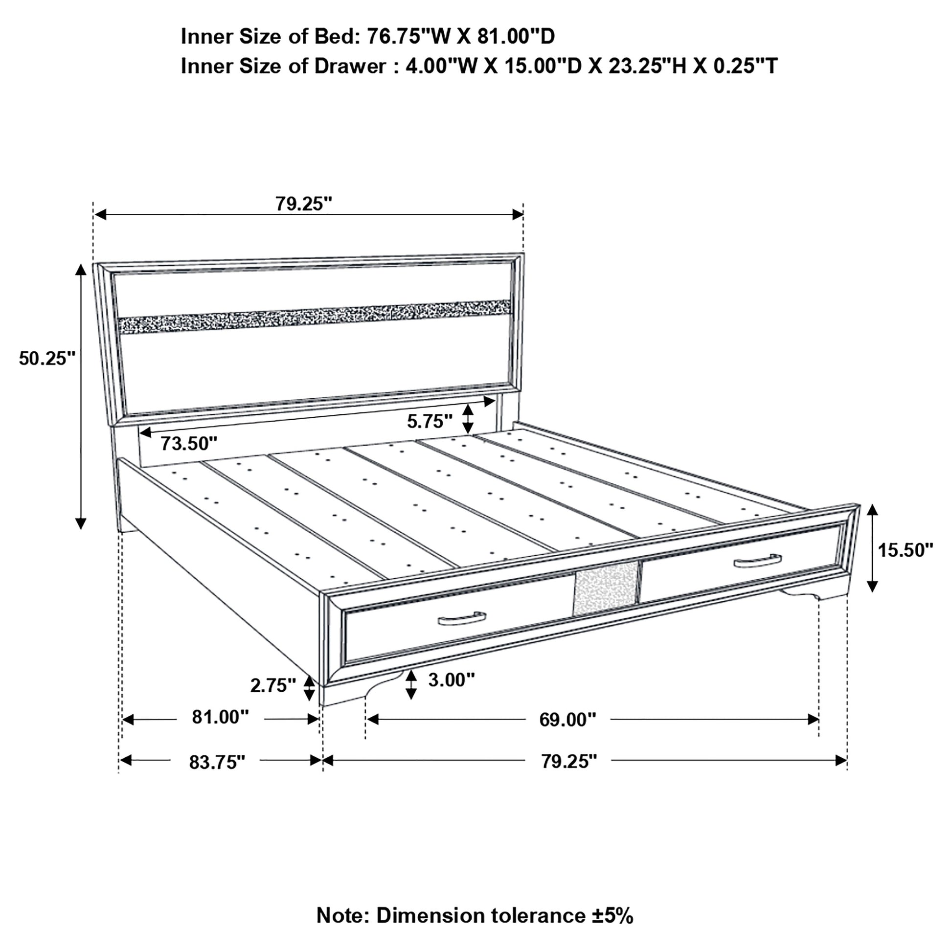 Miranda 51-inch Wood Eastern King Storage Panel Bed Black