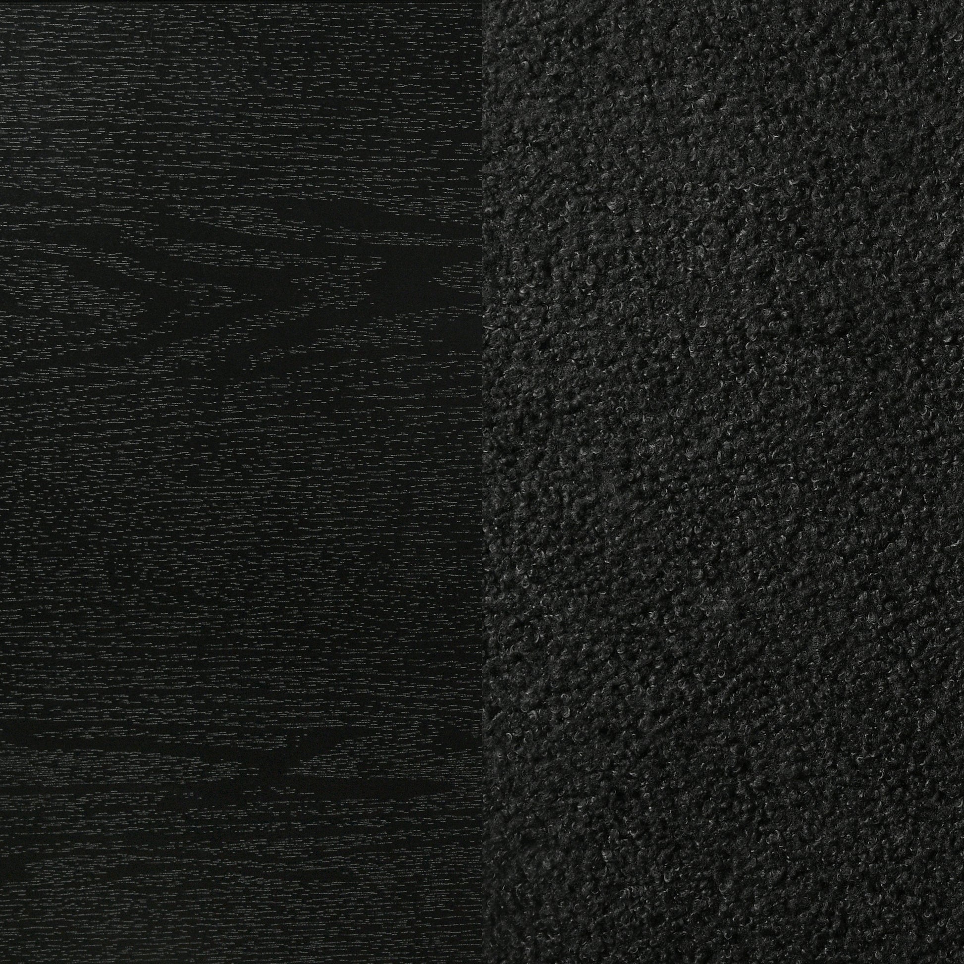 Embrace tuxedo style with the dramatic black and sparkling trim featured on a modern wooden bed. Its simple silhouette brings elegant presence with a rectangular headboard complete with upholstered panels, foam cushioning and black fabric. Glittering trim adds sparkle and elegance in a horizontal stripe on the headboard and vertical stripe on the footboard. The footboard adds a low profile, clean-lined touch, perfect for an open, airy bedroom. Thick side rails and bracket feet complete the bed to perfection.
