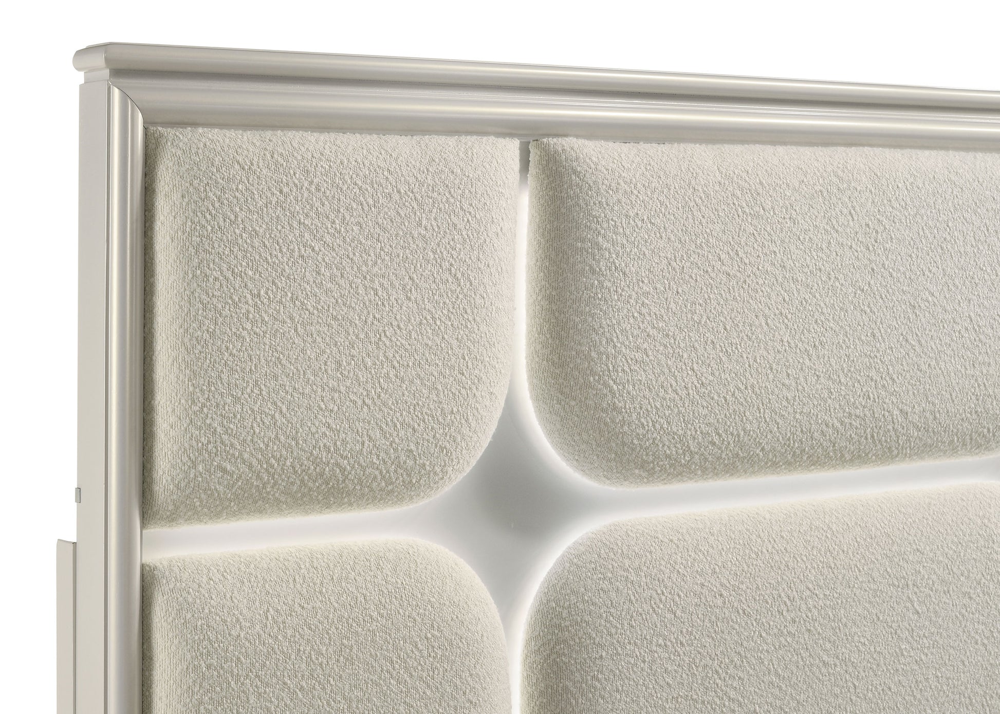 Olivia Queen Panel Bed LED Headboard Pearl White