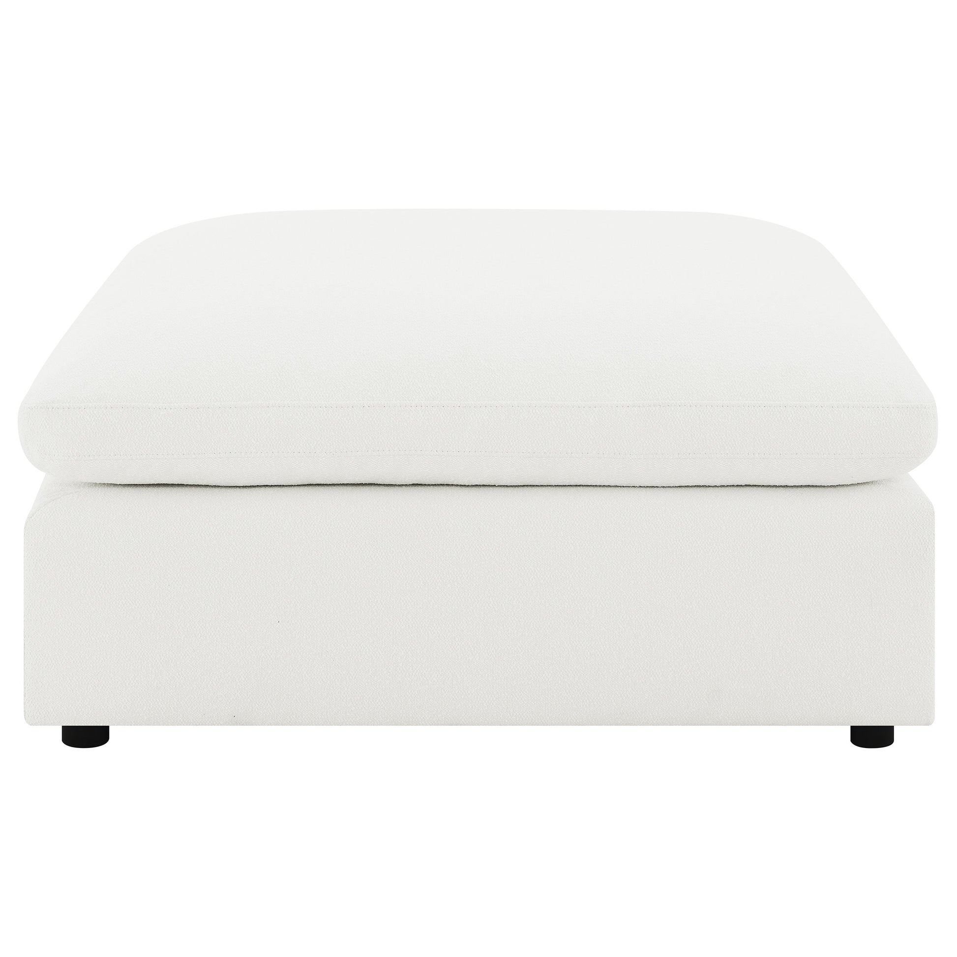 Introduce impeccable comfort with a modern ottoman that coordinates with your modular sectional sofa. This accent piece features neutral water-resistant boucle upholstery for an on-trend look and feel that works in a variety of homes and living spaces. The ottoman is freestanding, serving as a flexible footrest or creating a chaise lounge when paired with your sectional. Foam cushions pair with feather blend for exceptional comfort and a plush feel you'll love when lounging. Its plush pillow top features foam and feather blend fill for excellent support and comfort.