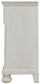 Elegant, timeless furnishings take your bedroom to the next level. Nothing does that better than this dresser. The antiqued white finish with a wonderful grain texture radiates sophistication, while dark bronze-tone knobs add an ornate touch. Felt finishing in the upper drawers rounds out this tasteful piece.