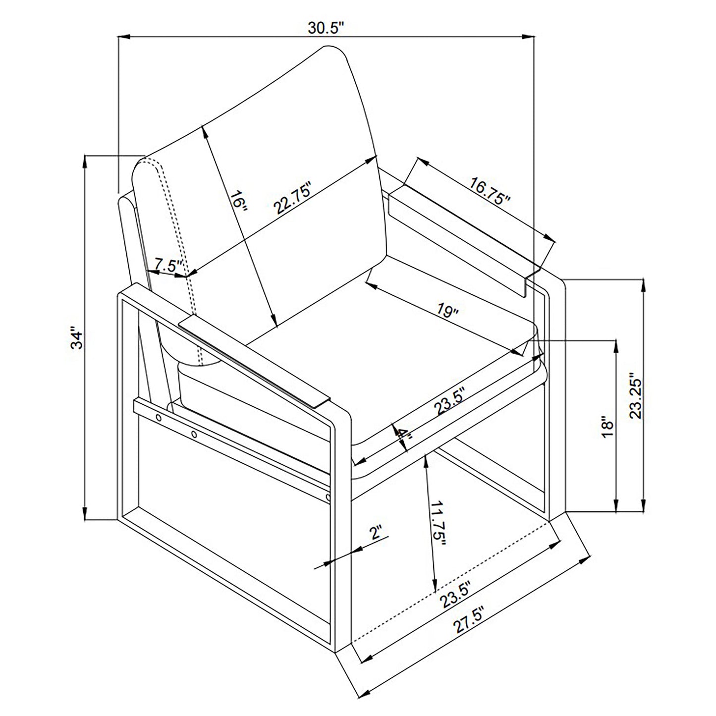 Cool modern style turns the Rosalind accent chair into a tasteful choice for your casual living room or home office. Begin with the lush feel of eco-friendly smooth vegan leather upholstery. This accent chair borrows from a retro motif yet updates any space with a carefree ambiance. Its gunmetal finished metal frame adds an open squared design on side brackets with strips of upholstery covering each armrest. Sit comfortably on a removable seat and lean against a back cushion with generous padding.