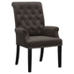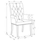 • Plushily padded side chairs are adorned with rolled backs and button-tufted upholstery with bold nailhead trim