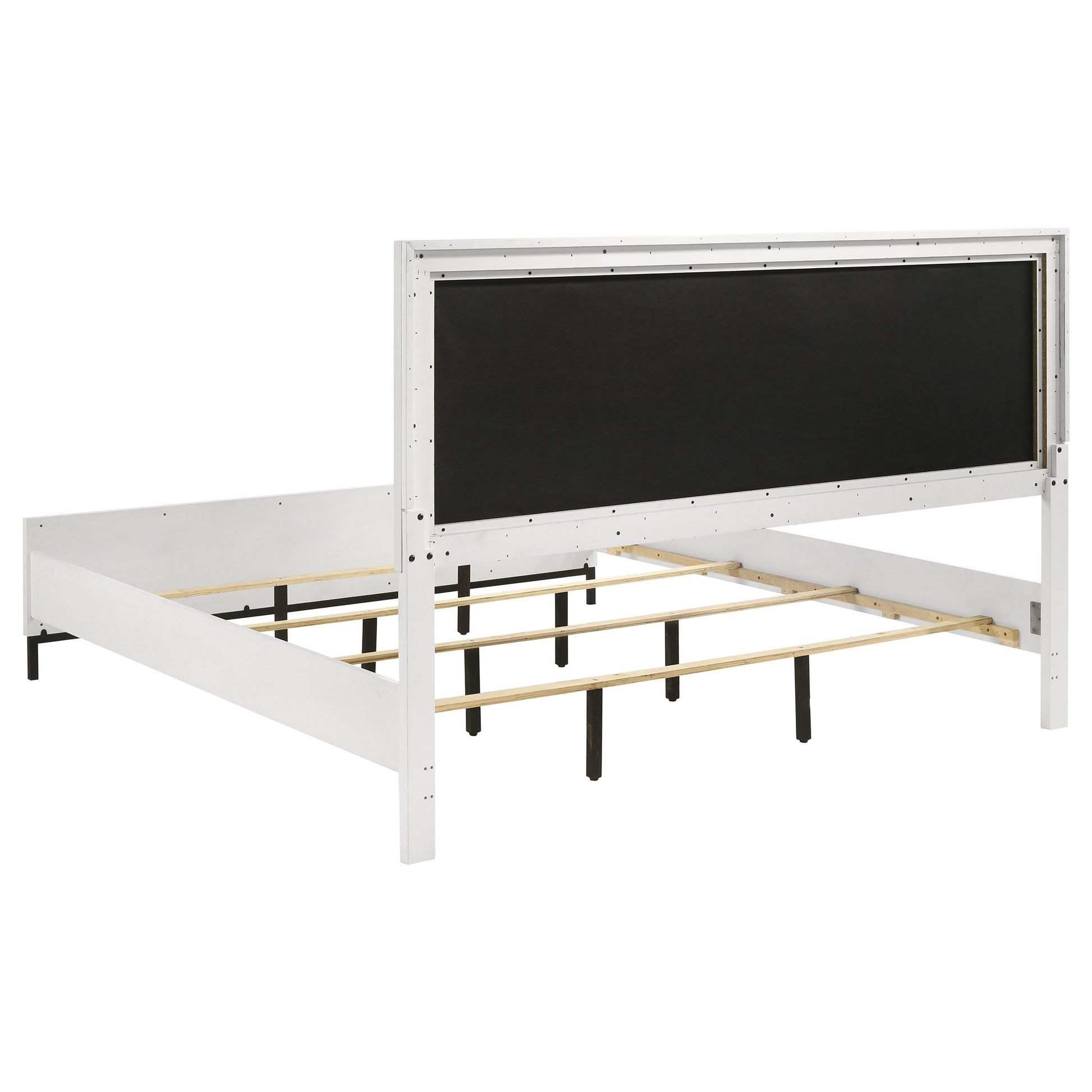 • Low footboard creates an airy look, complementing a bright white finish and black accents