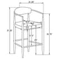 Charm is the watchword for a set of two modern counter height stools. Each embraces a light, airy ambiance with an open back and slim, rounded rest that provides ample support for everything from a leisurely meal to a quick bite. Its padded seat adds foam for comfort, while stylish upholstery sets the tone in your kitchen or dining room. The counter stool features a black finished base with a tapering silhouette that offers airy, open elegance. A built-in footrest is a perfect finishing touch, delivering impressive support to both the chair and those that sit upon it.