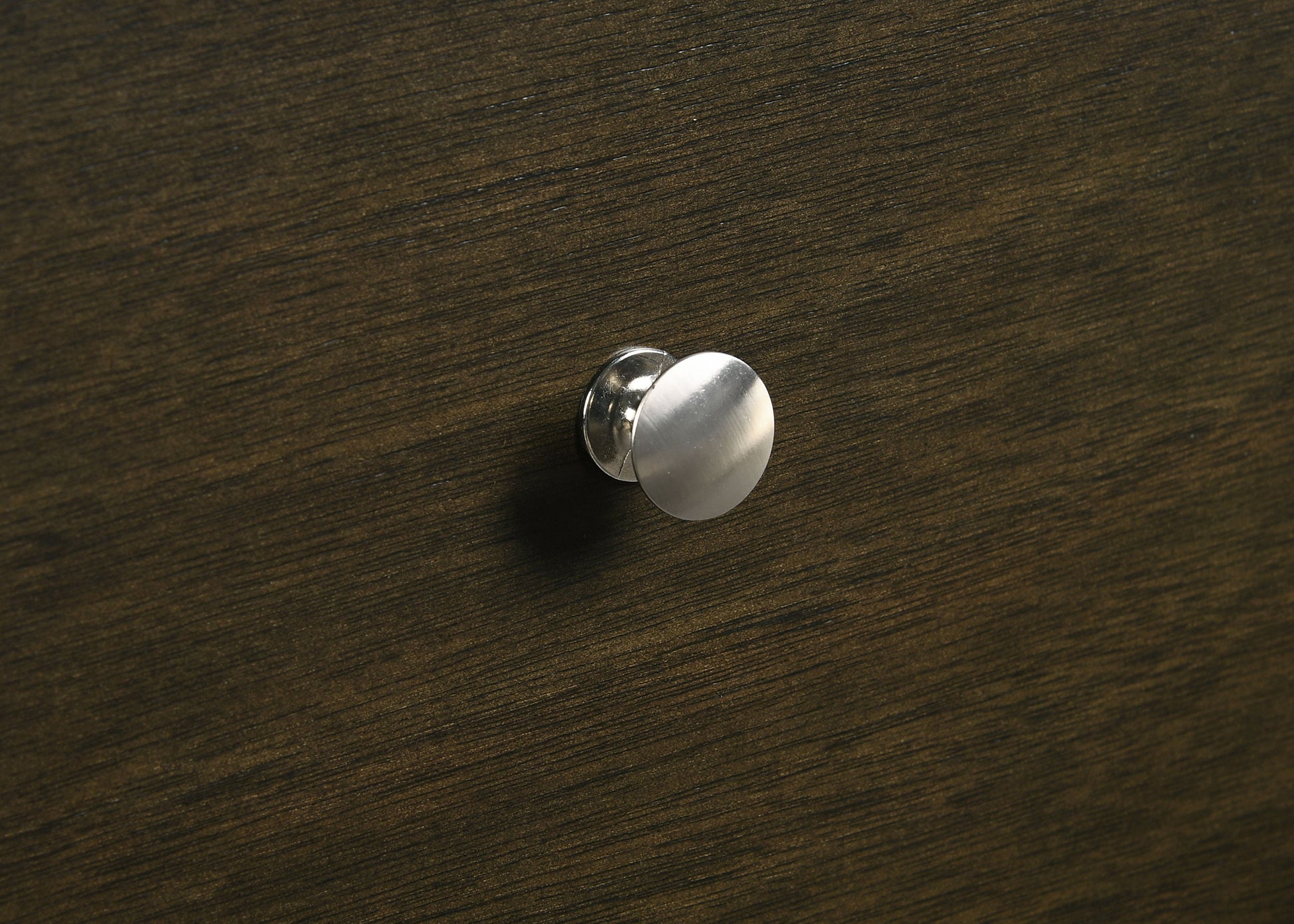 This six-drawer dresser offers generous storage and sophisticated style, making it an essential addition to any modern bedroom. The dark cocoa finish highlights the clean lines and vertical details, adding depth and character to the piece. The drawers are fitted with brushed nickel hardware, giving the dresser a sleek, contemporary look. Each drawer operates smoothly on center metal glides, providing easy access to your wardrobe. Constructed from solid rubberwood and tropical wood veneers, this dresser blends function with timeless style.